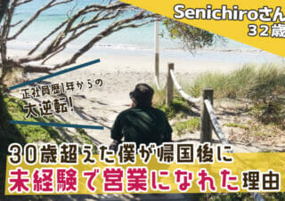 利用者インタビュー 正社員歴1年!帰国後に32歳で未経験営業になれた理由【Senichiroさん32歳】